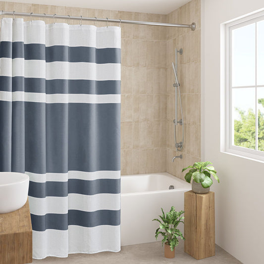 Spa Waffle - 36" x 72'' Shower Curtain With 3M Treatment - Dark Blue