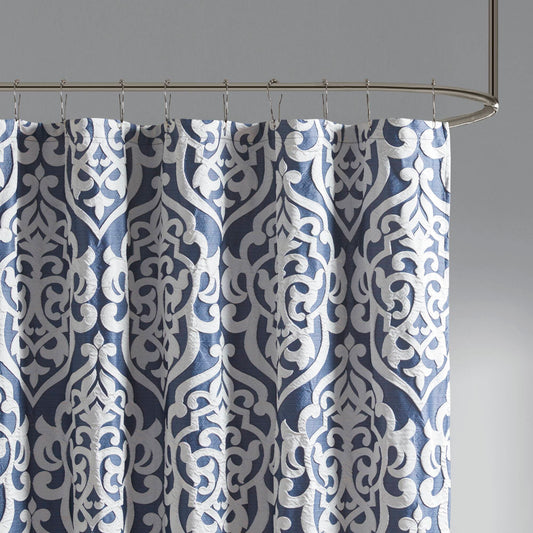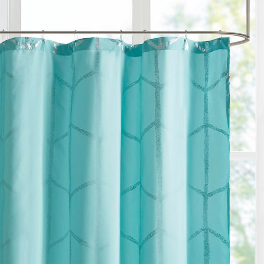 Raina - Printed Metallic Shower Curtain - Aqua / Silver