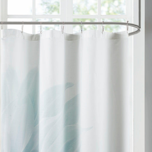 Magnolia - Floral Printed Burnout Shower Curtain - Aqua