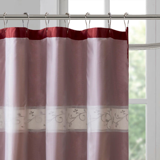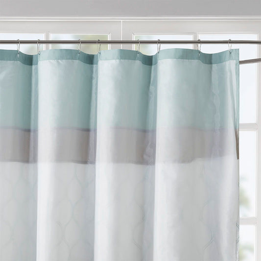 Shawnee - Printed And Embroidered Shower Curtain - Seafoam