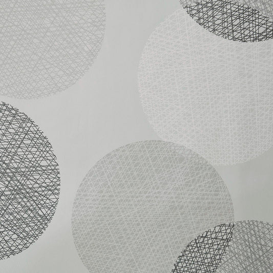 Nea - Printed Shower Curtain With Trims - Off White / Gray
