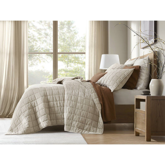 100% Linen - King/California King Linen Garment Washed Quilt Set - Linen