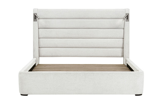 Clayten - Eastern King Bed - Beige Linen & Espresso