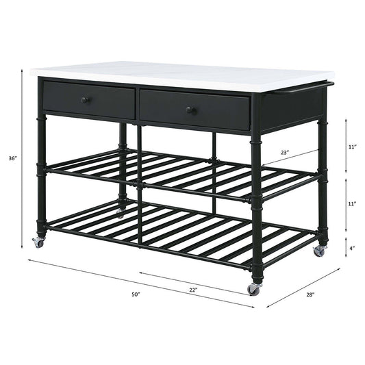 Enapay - Kitchen Island - Marble Top Top & Gray