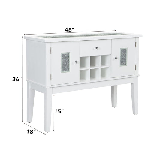 Elizaveta - Server - Faux Crystal Diamonds & White High Gloss