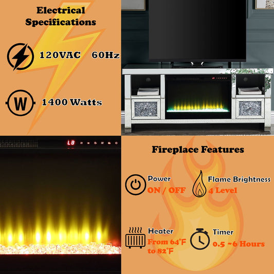 Noralie - 26" TV Stand With Fireplace - Mirrored & Faux Diamonds