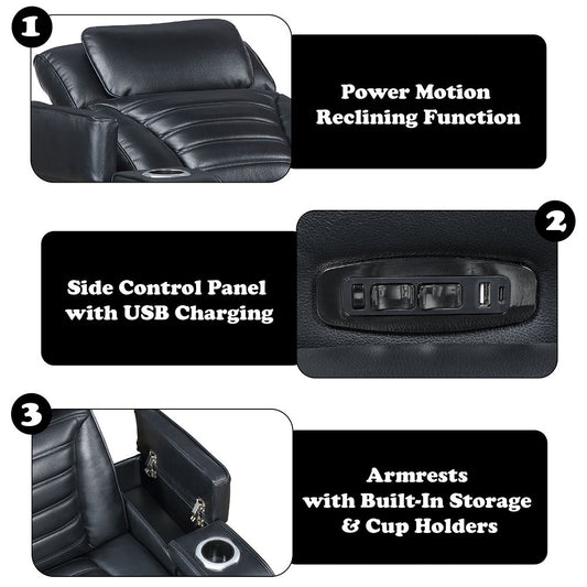 Taddeo - Power Motion Recliner With Power Headrest, USB, Wireless Charger & LED - Dark Gray