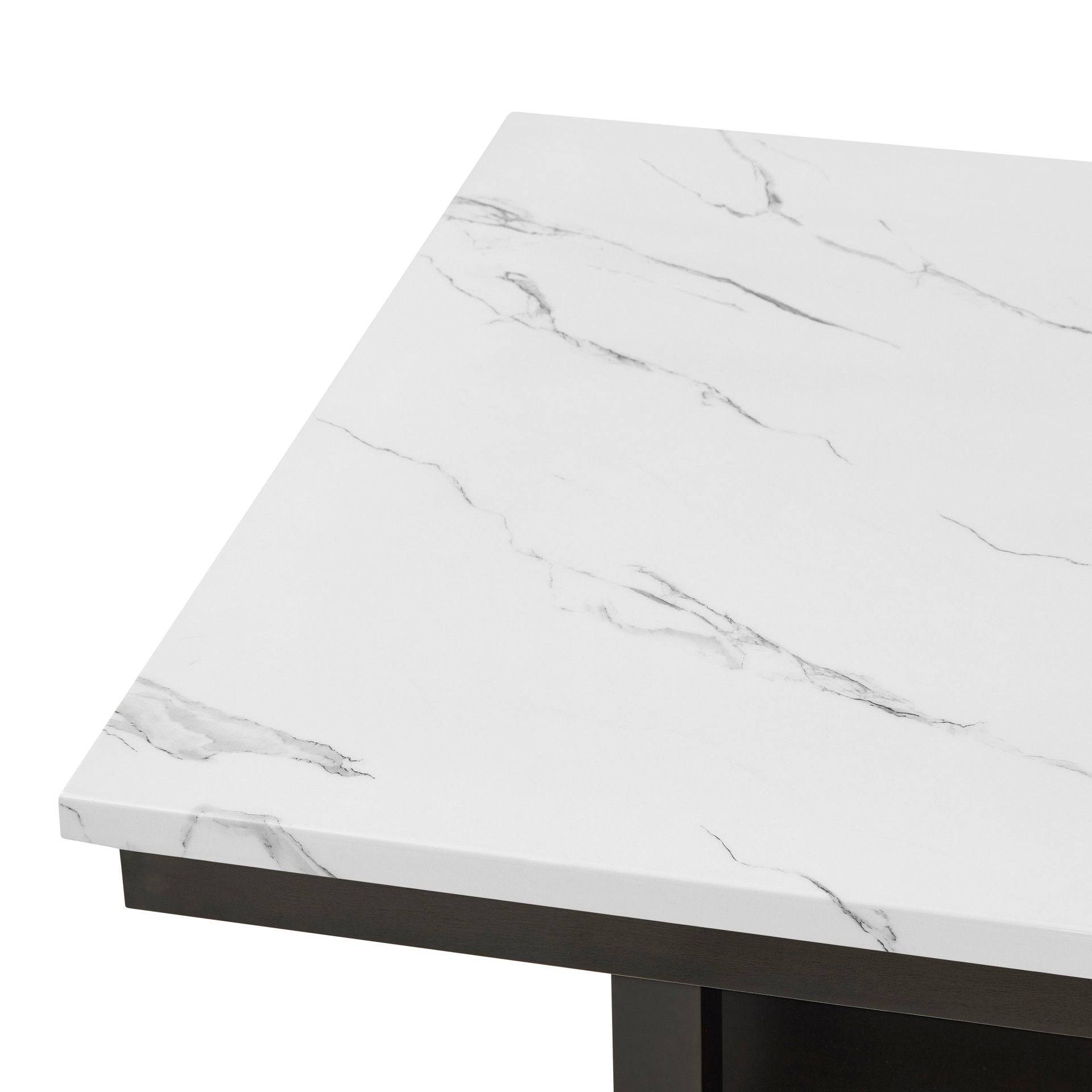 - Contemporary Glamour: The white and gray veined faux marble top glimmers against deep espresso legs, offering a sleek, modern ambiance.