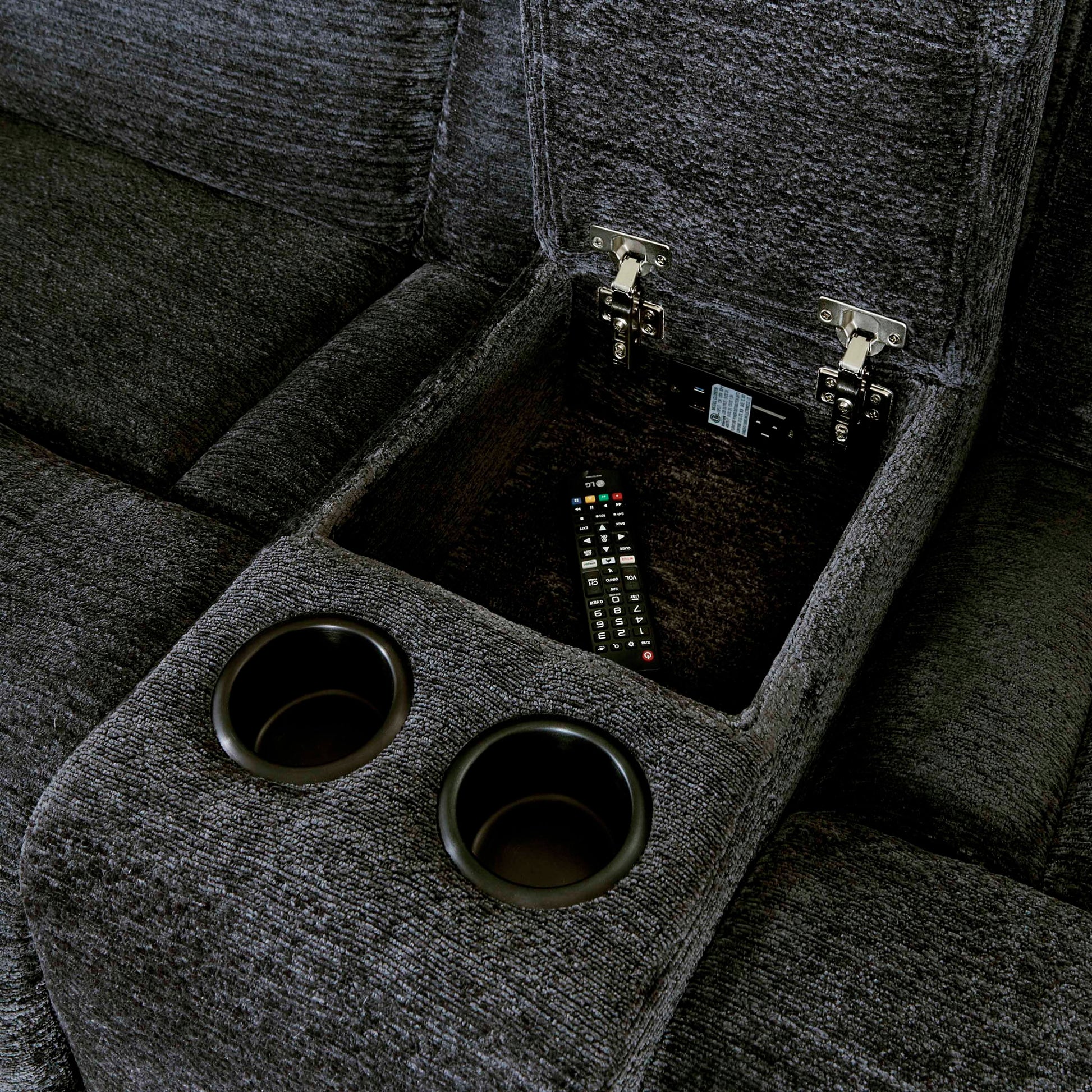 For maximum coziness, Dalton is unsurpassed. Its generously scaled design is brought to life in a plush, textural high performance chenille cover while it delivers power motion footrest and headrest functionality. Dalton's wide arms feature integrated cupholders and its overstuffed headrest and comfort channels create an exceptional comfort experience. Optional armless chair features a drop-down table with power center, cupholders and wireless charger.