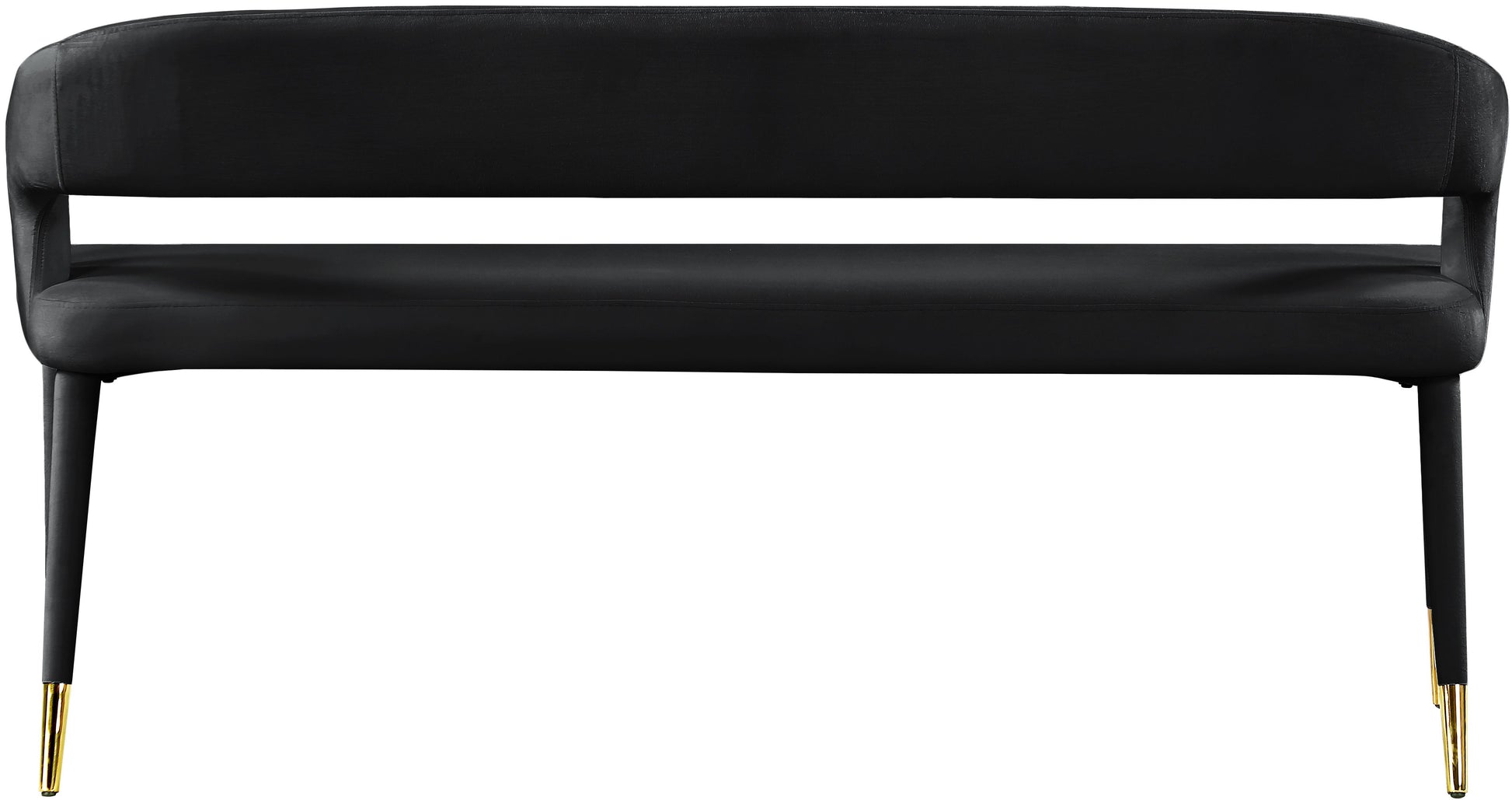 Enjoy extra seating space in your home with this Destiny bench. Its soft upholstery offers coziness while sitting, ensuring you and your guests are always comfortable. A rounded, open back provides additional comfort as well as style. Gold tipped upholstered legs give this bench an extra touch of style that complements any contemporary living space. Its long length guarantees that you ll always have extra space to seat family and friends who visit.