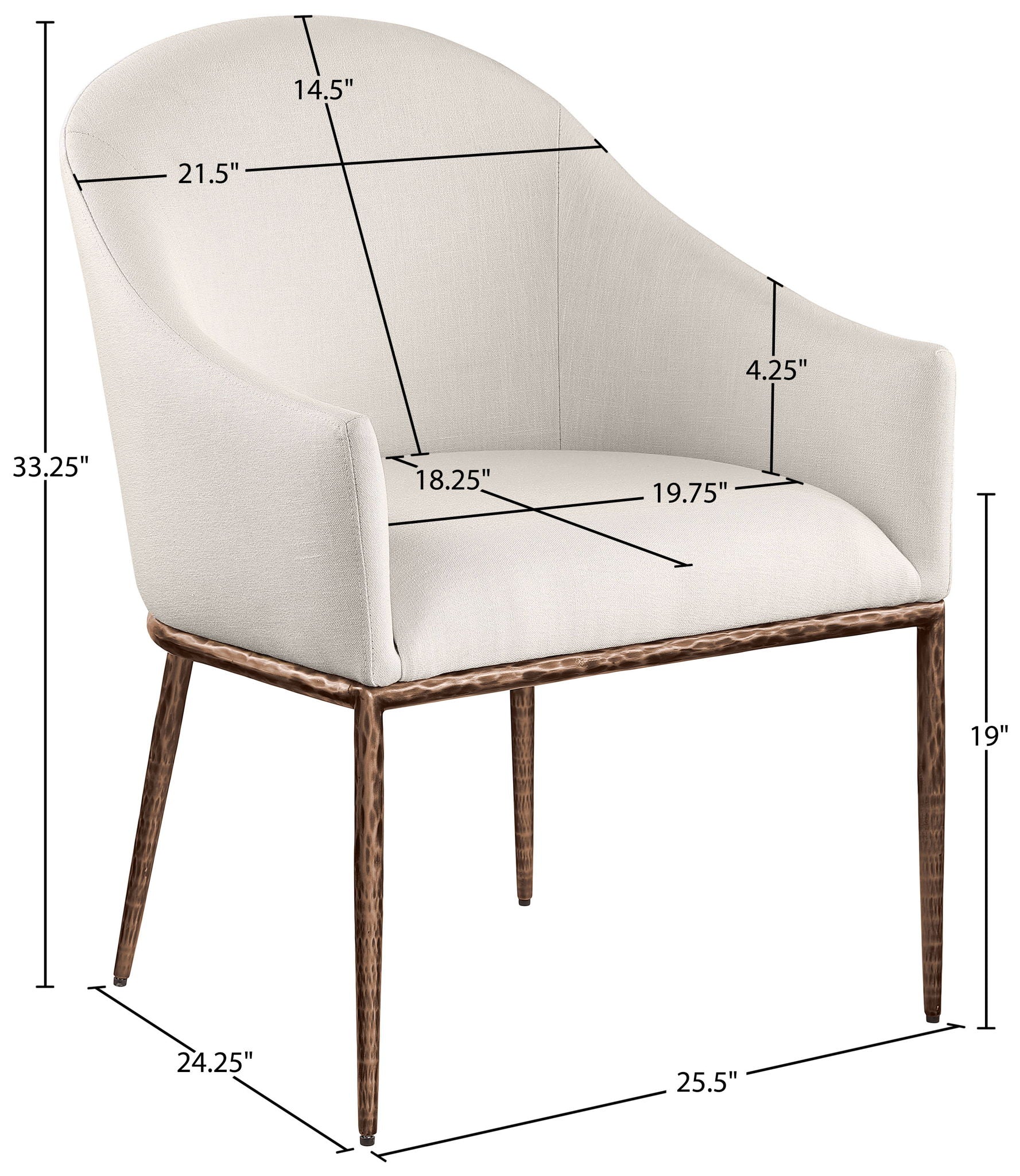 Ferro - Linen Textured Performance Fabric Upholstered Dining Arm Chair - Beige / Brushed Bronze