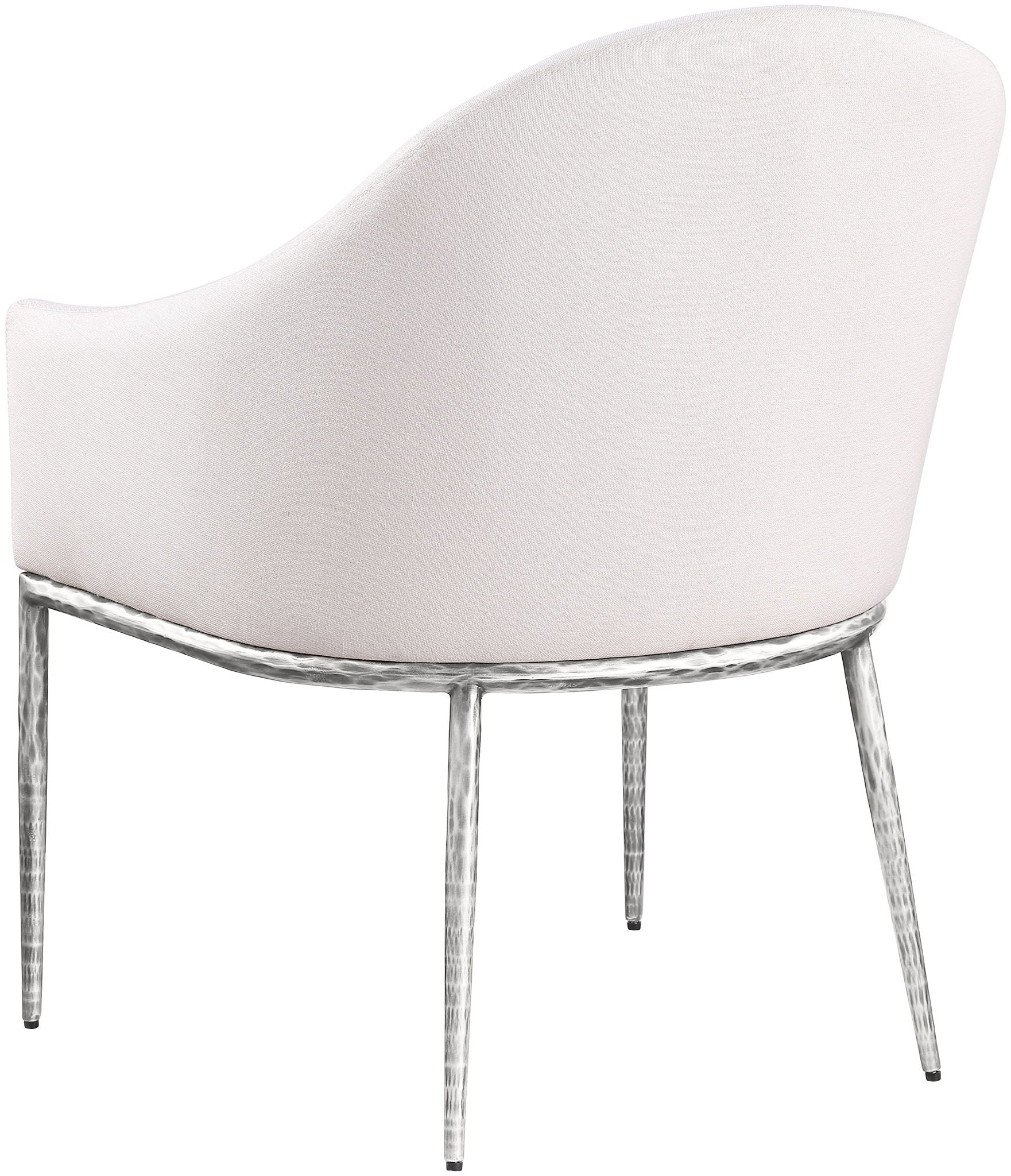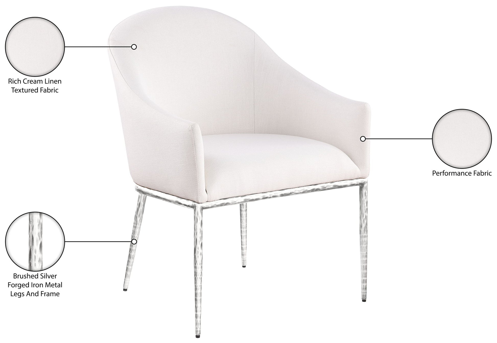 Ferro - Linen Textured Performance Fabric Upholstered Dining Arm Chair - Cream / Brushed Silver