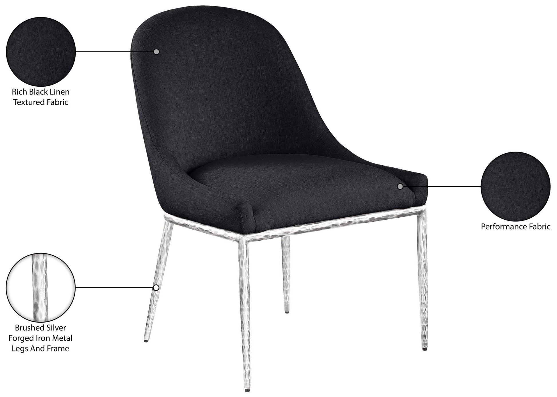 Ferro - Linen Textured Performance Fabric Upholstered Dining Side Chair - Black