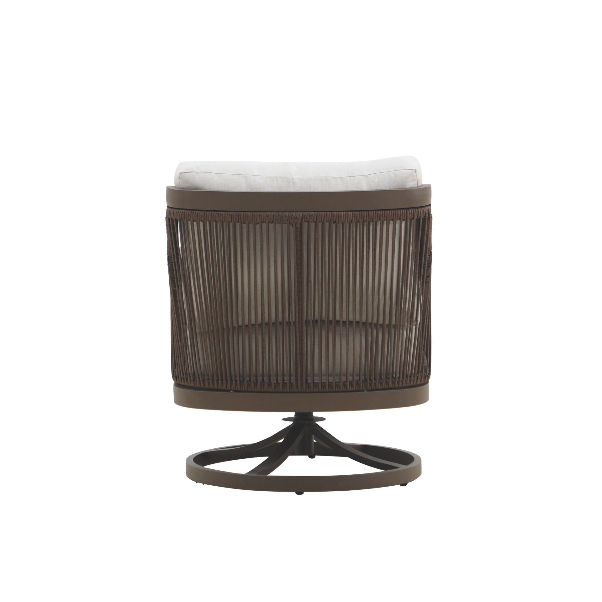 The Genova Patio Swivel Club Chairs with accent pillows offer the perfect balance of durability, comfort, and function for your outdoor seating area. Crafted with durable aluminum frames and a baked-on powder coat, these chairs provide superior scratch resistance and long-lasting performance. Made from eco-friendly PE wicker, they offer the classic look of wicker but with added benefits of being low-maintenance and resistant to water, mildew, and fading. The fade-resistant Sundura™ fabric cushions in light gray are designed to withstand the elements, ensuring vibrant color retention and protection against moisture and mildew for years to come. With 6” high-density foam cushions, you’ll experience lasting comfort and support. The smooth swivel mechanism allows you to stay engaged in conversations with ease, making every outdoor gathering more enjoyable. Featuring clean lines, neutral tones, and woven rope seat backs, these chairs embody contemporary sophistication while adding an airy feel and modern texture to any space. Make these chairs part of your patio setup and enjoy a stylish, comfortable, and weather-resistant seating solution.