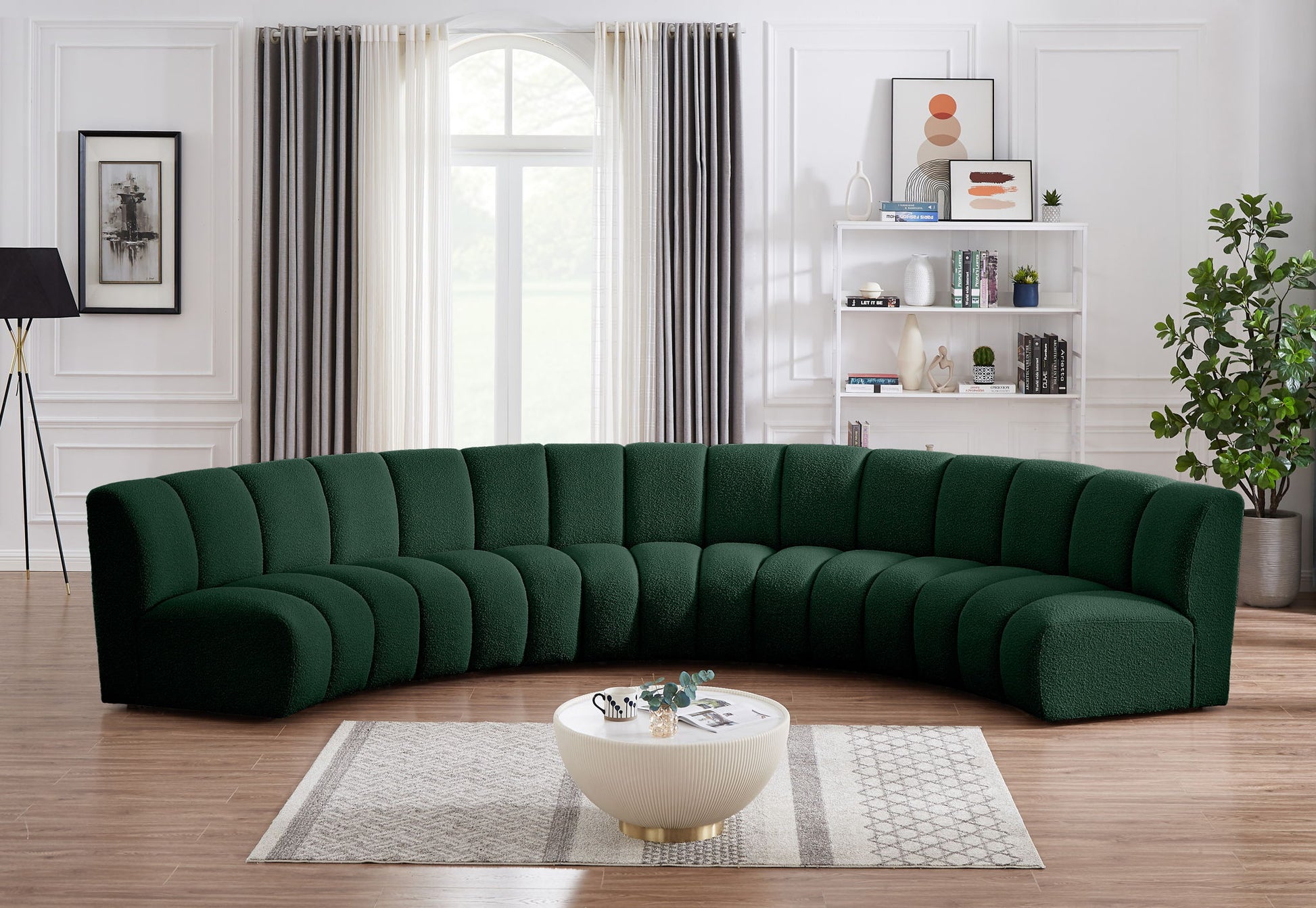 Mix and match this Infinity boucle fabric modular chair with other items in the Infinity collection to find the best possible seating solution for your gang. Rich boucle fabric feels welcoming and soft to the skin, so you stay seated comfortably for the big game or while watching your favorite programs. Deep channel tufting adds to the longevity and durability of this modular chair while giving it texture.