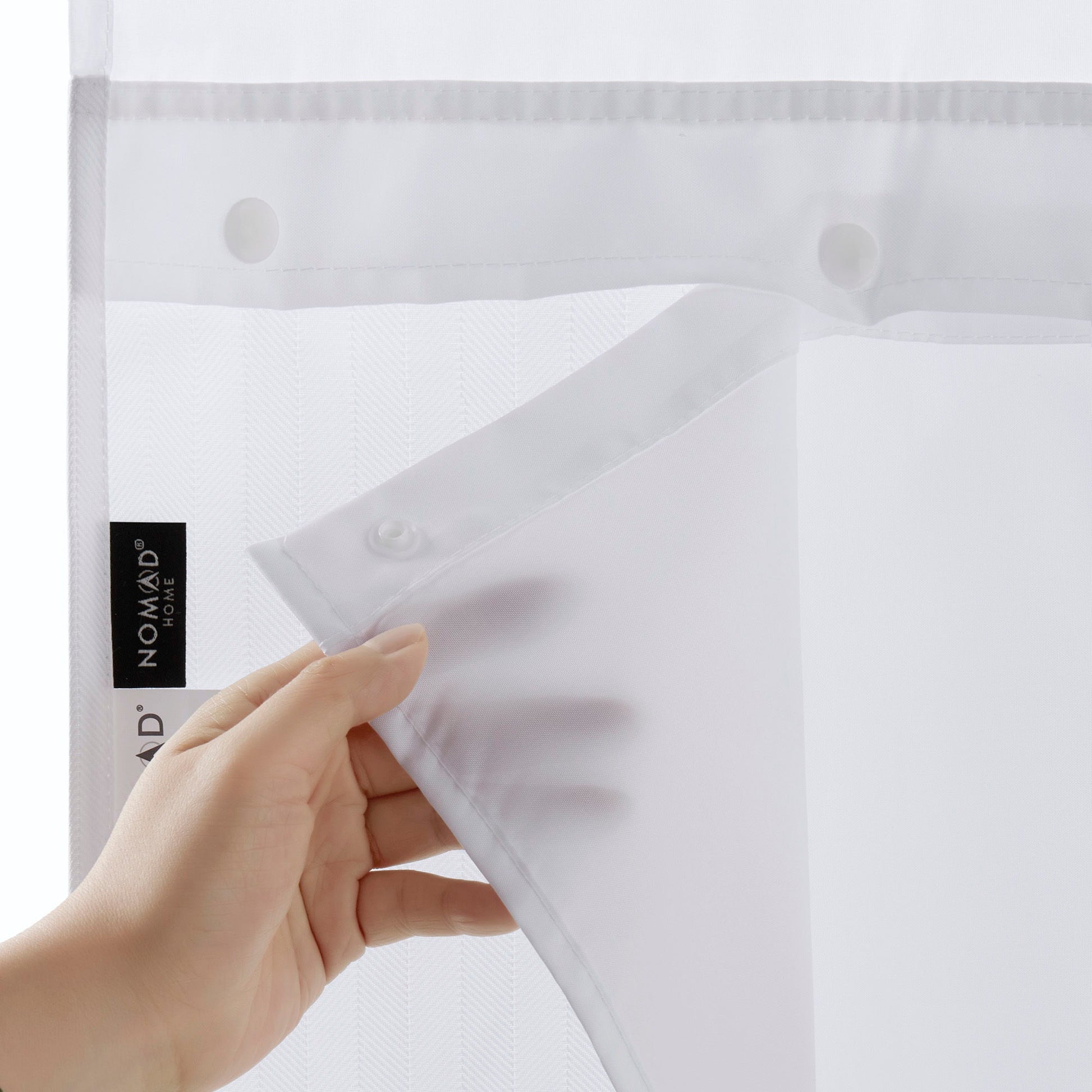 Our Bath Guardian® Premium Shower Curtain offers durable protection for the bath and prevents water from splashing outside the tub. A subtle stripe pattern adds a touch of style yet will fit into any bath decor and a voile window allows light into the shower while still maintaining privacy. The all-in-one design allows for easy installation and removal for laundering without the added cost of shower curtain rings. Each curtain comes with a snap-in liner for an extra level of protection and makes these products incredibly easy to launder. All Bath Guardian® shower curtains include magnets on their liners for a secure fit and are made from durable polyester. Our Bath Guardian® curtains and liners are also treated with our Fuze® permanent and all natural antimicrobial to resist mold and mildew and reduce microplastic and microfiber shed into the environment.