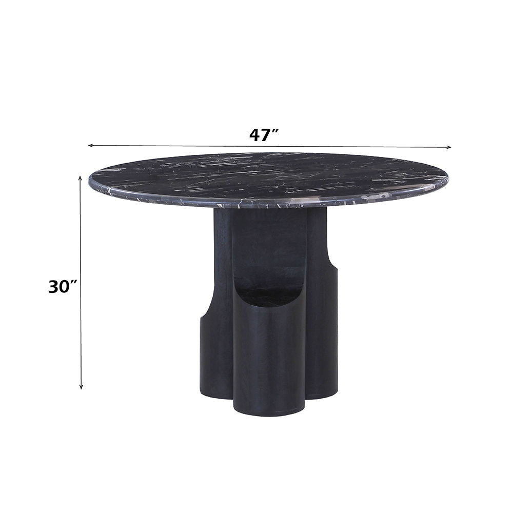 Kinton - Round Dining Table With Natural Marble Top - Black