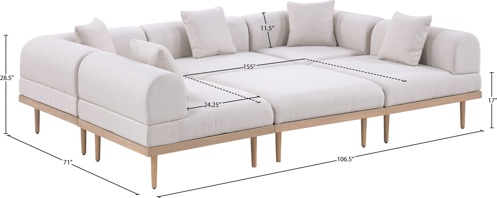 Laguna - 6 Piece Resilient Water Resistant Fabric 106.5" Upholstered Outdoor Patio Modular Sectional - Cream