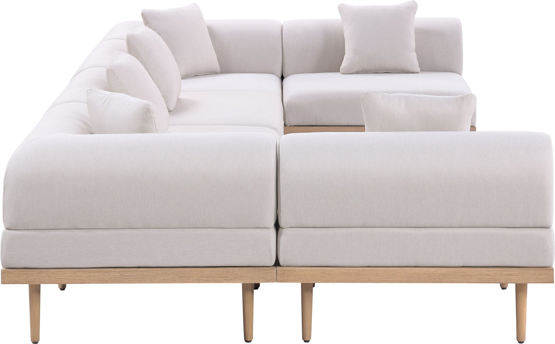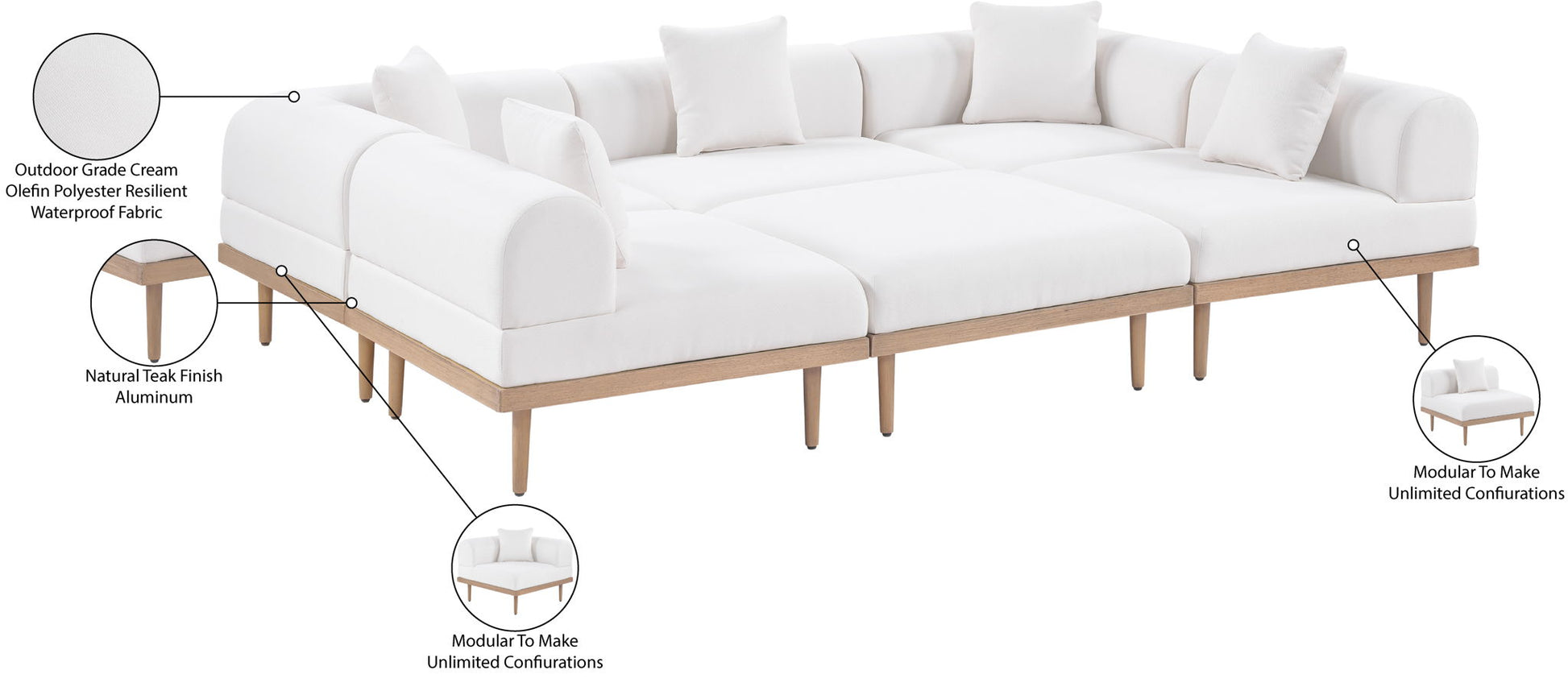 Laguna - 6 Piece Resilient Water Resistant Fabric 142" Upholstered Outdoor Patio Modular Sectional - Cream