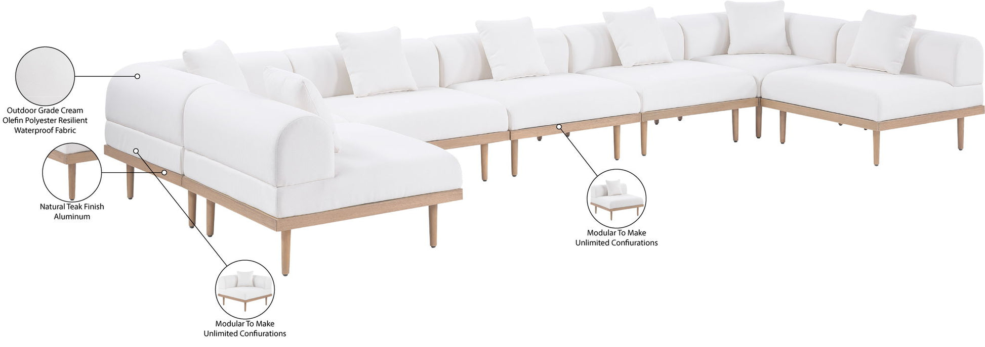 Laguna - 7 Piece Resilient Water Resistant Fabric 177.5" Upholstered Outdoor Patio Modular Sectional - Cream
