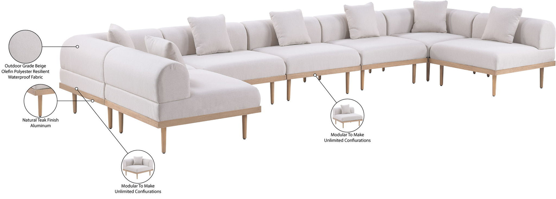 Laguna - 7 Piece Resilient Water Resistant Fabric 142" Upholstered Outdoor Patio Modular Sectional - Beige