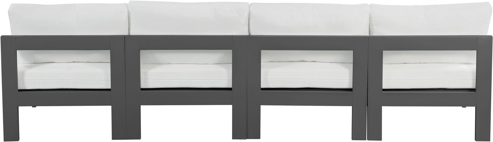 Nizuc - Outdoor Patio 4 Piece Armless Modular Sofa With Gray Frame - White