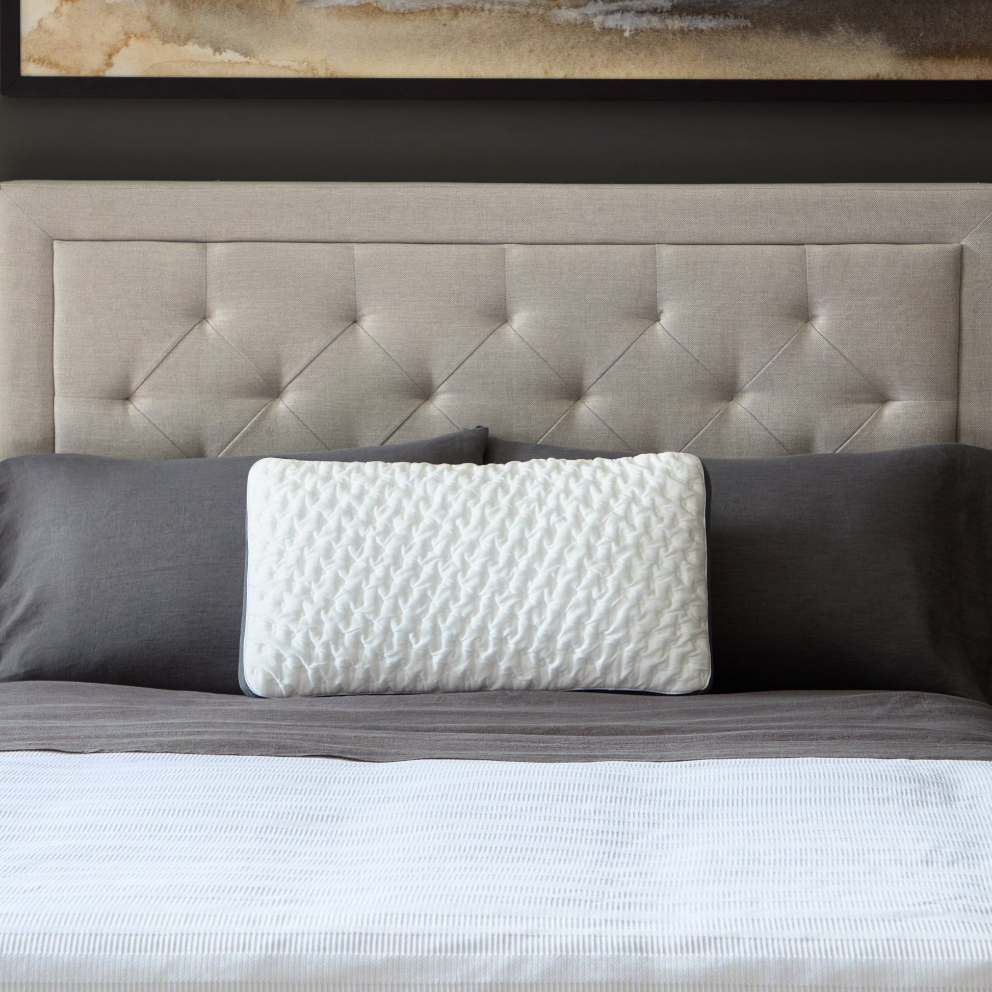 Soft, light, and cooling—this quilted pillow feels like a dream. Get multiple benefits from the two distinct feels, with a traditional filled pillow on one side and a plush gel memory foam pillow on the other. A cushioning Gel Dough™ memory foam side helps relieve pressure points with a slow, sink-in feel, and a fluffy down alternative side creates the traditional feeling of a filled pillow. A new style of HyperChill™ cover is instantly cooling, but with light, airy, and plush quilting that looks and feels great.