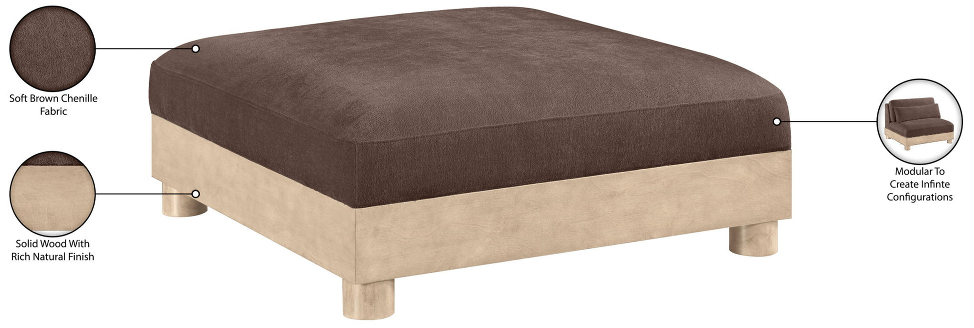 Turin - Chenille Fabric Upholstered Modular Ottoman - Brown / Painted Natural